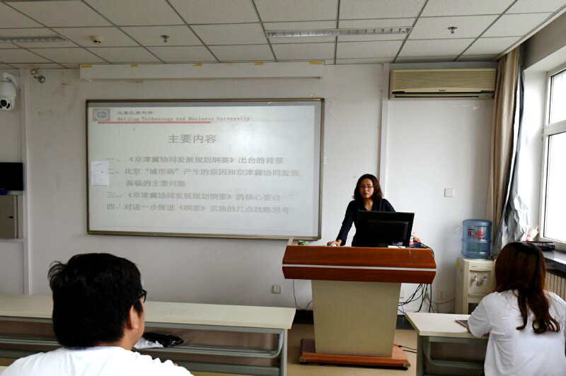 隨后,李麗教授以“京津冀協(xié)同發(fā)展規(guī)劃綱要解讀與戰(zhàn)略思考”為主題展開講座。她從四個方面對京津冀一體化協(xié)同發(fā)展進行解讀,一是回顧了30年來京津冀區(qū)域合作歷程,對《京津冀協(xié)同發(fā)展規(guī)劃綱要》出臺的背景進行介紹,提出京津冀區(qū)域的協(xié)同發(fā)展,要把創(chuàng)新放在重要位置;二是分析了北京“城市病”產(chǎn)生的原因和京津冀協(xié)同發(fā)展面臨的主要問題;三是講解了《京津冀協(xié)同發(fā)展規(guī)劃綱要》的核心要點,指出京津冀發(fā)展要明確三省市各自功能定位,實現(xiàn)京津冀區(qū)域的空間結(jié)構(gòu)優(yōu)化,疏解非首都功能,重點領(lǐng)域率先突破,引領(lǐng)區(qū)域協(xié)同發(fā)展;四是提出了對進一步推進《綱要》實施的幾點戰(zhàn)略思考。