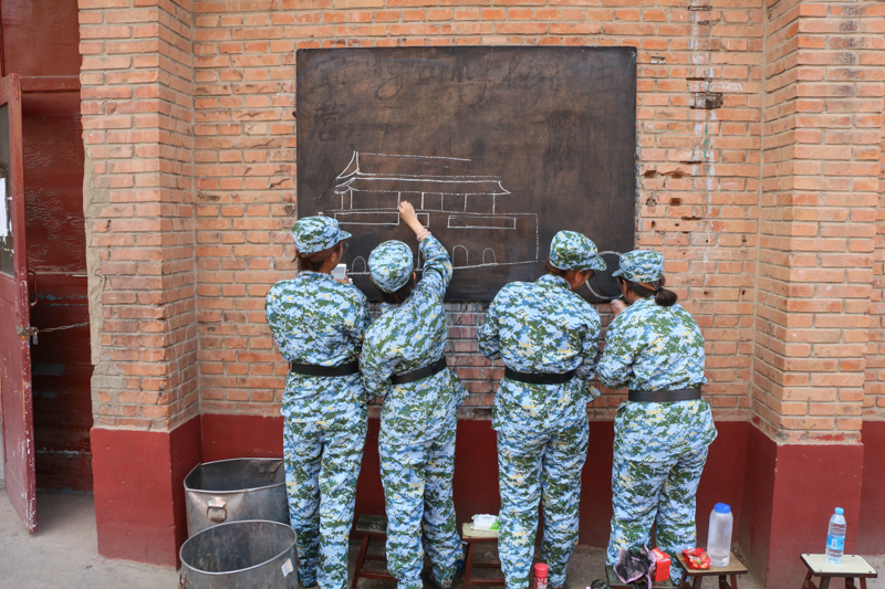 12天的軍訓,基地就是師生臨時的家。哪里水龍頭壞了,哪個宿舍窗玻璃碎了,哪天天氣寒涼需要加紅糖姜水了,哪個學生病情需要終止訓練送回家里了,點滴瑣碎的小事,指揮部都需要第一時間協調解決。訓練期間,醫生們一天16小時不間斷的高強度工作,即便深夜有學生生病也隨叫隨到。學校的保障車輛往返于基地和醫院,確保讓生病學生及時就醫。負責后勤保障的殷樹惠老師,每日早早督促基地準備好幾十個開水桶和食堂熱騰騰的可口的三餐。宣傳部的攝影師們穿梭在各處,為學生留下每一個珍貴的鏡頭。