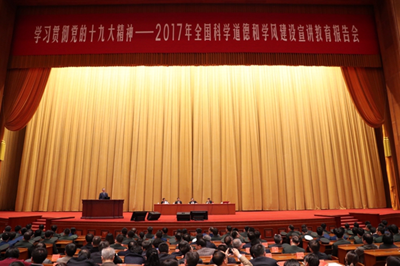 11月14日下午,由中國科協、教育部、中國科學院、中國社會科學院、中國工程院、國家自然科學基金委員會和北京市政府共同主辦的“學習貫徹黨的十九大精神——2017年全國科學道德和學風建設宣講教育報告會”在人民大會堂舉辦。我校100名研究生與來自首都高校、科研院所及部隊高校等40余家研究生培養單位的研究生新生近6000人現場聆聽報告。