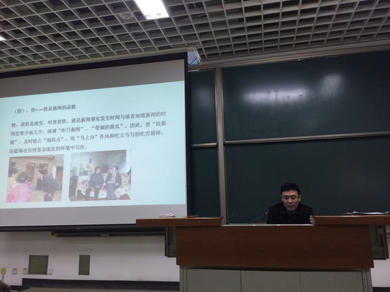 李群杰結(jié)合自己23年的記者生涯,用大量生動鮮活的新聞案例,詳細(xì)講解新聞采訪和寫作技巧:“新”“真”“短”“快”“活”。“新”是新聞的特色,只有出其不意,角度新穎,才能在眾多同類新聞中脫穎而出,得到讀者青睞;“真”是新聞的生命,新聞的基本原則是用事實說話,虛構(gòu)編造是新聞大忌;“短”是新聞的規(guī)律,信息密集,一針見血,白描手法的新聞受歡迎;“快”是新聞的品格,寫新聞要“搶”,要及時搶占“制高點(diǎn)”,具有“馬上辦”作風(fēng)和立馬寫的吃苦精神,還要能夠做到在任何復(fù)雜混亂的環(huán)境中堅持完成寫作的能力;“活”是新聞的趨勢,標(biāo)題要鮮亮,用語要生動,導(dǎo)語要有魅力。李群杰特別強(qiáng)調(diào)“今天的新聞就是明天的歷史,歷史的記錄容不得半點(diǎn)不實”“新聞是易碎品,只有當(dāng)你深入現(xiàn)場深入生活而親歷的新聞才會具有生命力”。