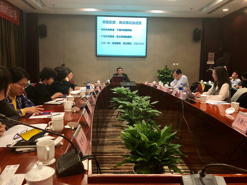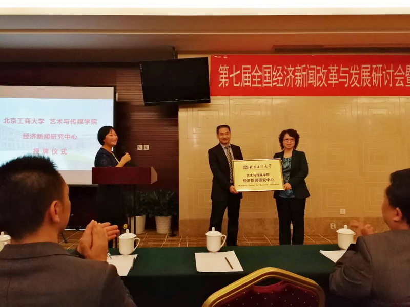 在主題活動環節,藝傳學院院長羅子明為經濟新聞研究中心正式授牌。他希望經濟新聞研究要立足國內、放眼世界,對中國經濟新聞傳播和教育做出應有的貢獻。經濟新聞研究中心主任王擎向參會人員介紹了中心自2015年成立以來所做的宣傳推廣、學術活動、平臺建設工作和取得的各項成果。