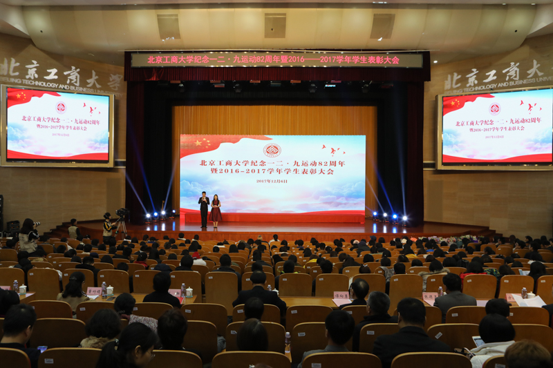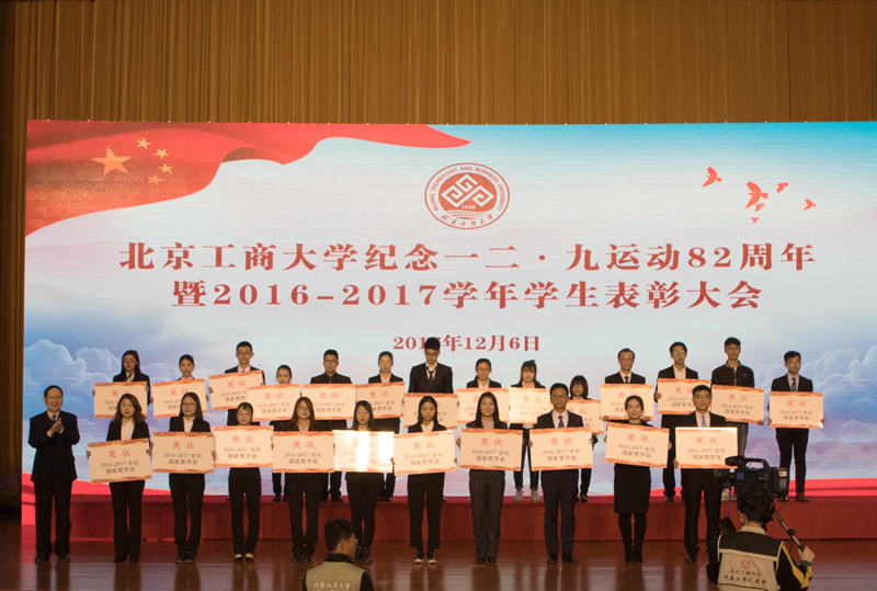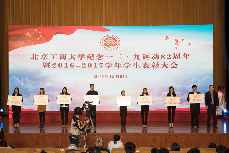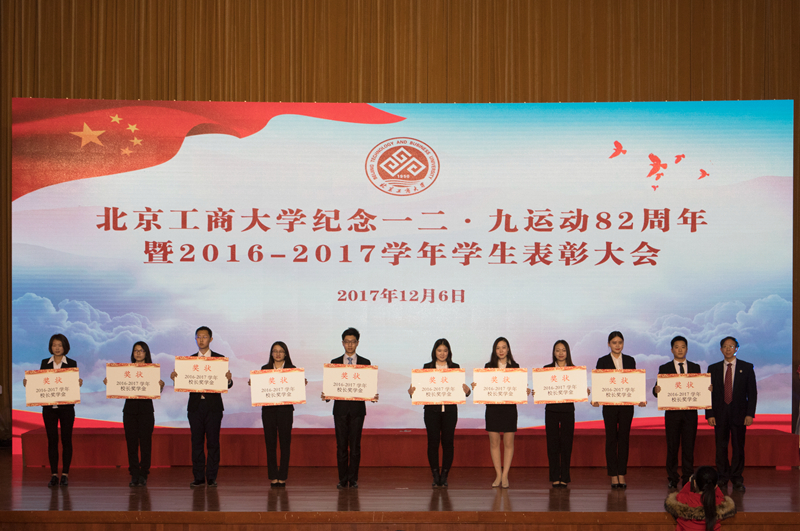 為弘揚愛國主義精神,表彰優秀,12月6日,學校紀念一二·九運動82周年暨2016—2017學年學生表彰大會在良鄉校區舉行。校領導譚向勇、孫寶國、張德玉、張耘、方德英、董竹娟出席活動,并與嘉賓一同為獲獎學生頒獎。相關職能部門負責人、各學院黨政領導、教師代表、獲獎學生代表、2016、2017級本科生、研究生代表以及特邀嘉賓社會獎學金資助方代表一同參加活動。