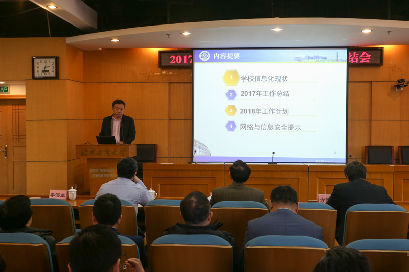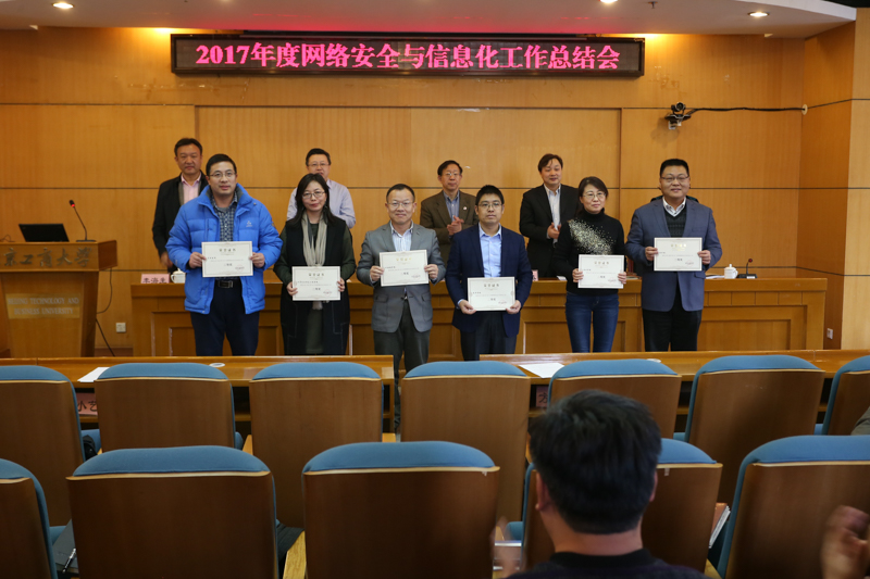 校長孫寶國在總結(jié)講話中對大家在2017年學(xué)校網(wǎng)絡(luò)安全與信息化工作中的努力和貢獻表示肯定和感謝。他指出,學(xué)校網(wǎng)絡(luò)安全和信息化建設(shè)取得了一定成績,一是大家工作努力的結(jié)果,二是學(xué)校高度重視、持續(xù)投入。隨著學(xué)校信息化程度越來越高,師生對信息化服務(wù)的要求也會越來越高。他強調(diào),網(wǎng)絡(luò)安全非常重要。去年學(xué)校出臺了《北京工商大學(xué)網(wǎng)絡(luò)及信息安全管理辦法》,大家應(yīng)提高網(wǎng)絡(luò)安全意識,時時刻刻不能放松警惕,逐級落實安全責任制。他希望,在信息化時代,尤其是在學(xué)校“雙一流”建設(shè)中,大家要圍繞中心,以創(chuàng)新的精神更加努力工作,樹立大局意識,充分發(fā)揮好信息化作用,加強網(wǎng)站建設(shè),特別要加強二級站建設(shè)、英文網(wǎng)站建設(shè),提高網(wǎng)站影響力,進而提高學(xué)校的影響力。習總書記講“幸福都是奮斗出來的”,北京工商大學(xué)的未來也是奮斗出來的。祝大家在新的一年中工作心情愉快,事業(yè)順利,家庭幸福。