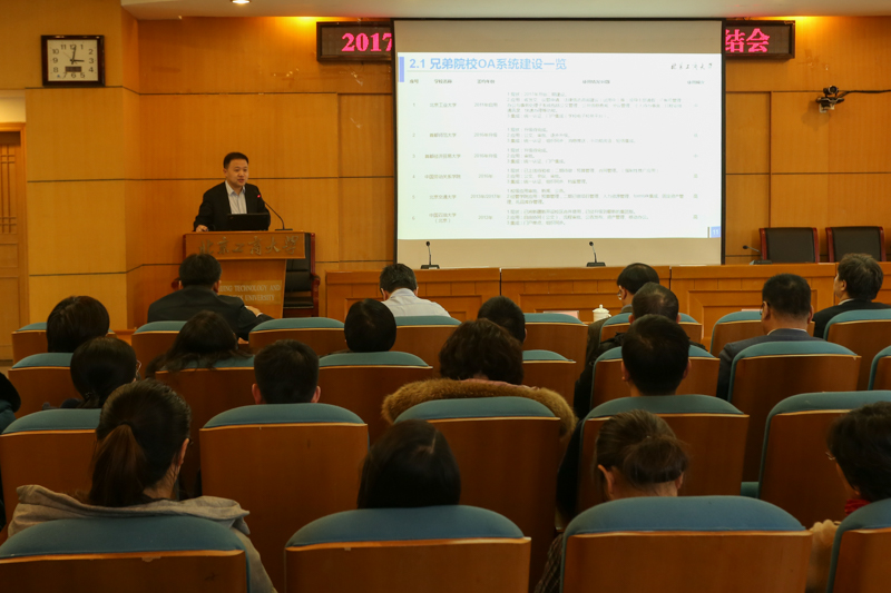 校辦副主任秦東生做了學(xué)校OA系統(tǒng)功能與操作方法的報告。他介紹了OA系統(tǒng)在提高工作效率、整合資源等方面的優(yōu)勢和兄弟院校運用OA系統(tǒng)開展工作的經(jīng)驗,著重介紹了我校OA系統(tǒng)的功能和目前運行的情況,希望各部門進一步加大協(xié)同OA系統(tǒng)的推廣力度。