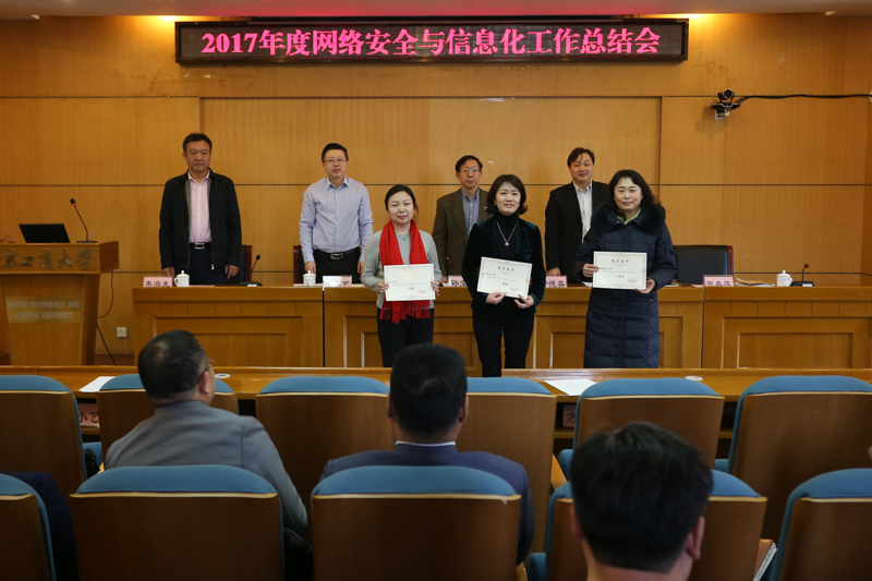 校辦王小藝主任宣讀了對在2017年度網(wǎng)絡(luò)安全與信息化建設(shè)與管理工作中的先進單位和個人進行表彰的決定,與會領(lǐng)導(dǎo)為獲獎單位和個人發(fā)獎。