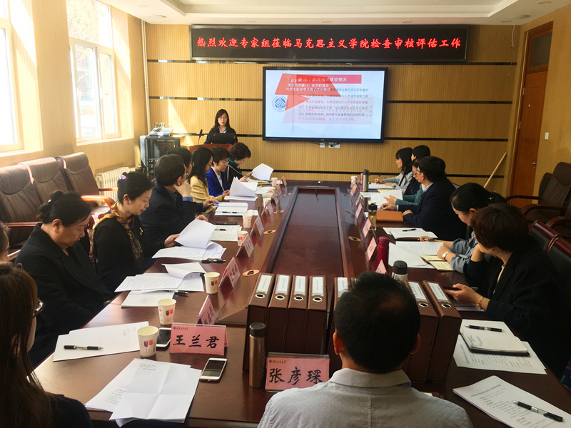 王魯娜院長匯報了學院本科教學審核評估自查情況,匯報圍繞思想政治理論課開設情況及建設目標、師資隊伍建設、教學資源建設、教學環節建設、教育教學成效、工作中存在的問題與不足等六個方面向檢查組專家匯報學院迎接本科教學審核評估的準備情況。高度凝練總結學院的審核評估工作,并且對專家組成員提出的問題進行了回答。專家組認真審閱了試卷、教學管理制度、教學檔案等相關材料,并給出了反饋意見和改進建議。