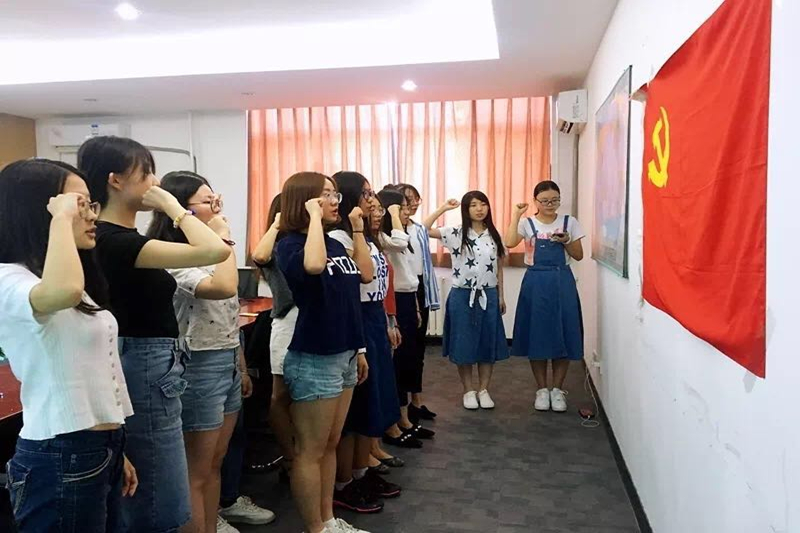 外國語學院則組織了黨員畢業(yè)生重溫入黨誓詞,集體宣誓的活動。本科生黨支部書記、優(yōu)秀退伍學生韓琛,今年考入清華大學讀研深造。她帶領全體畢業(yè)生黨員進行了宣誓。鏗鏘有力的誓言,激蕩著工商學子,火紅的黨旗,指引著畢業(yè)生黨員。