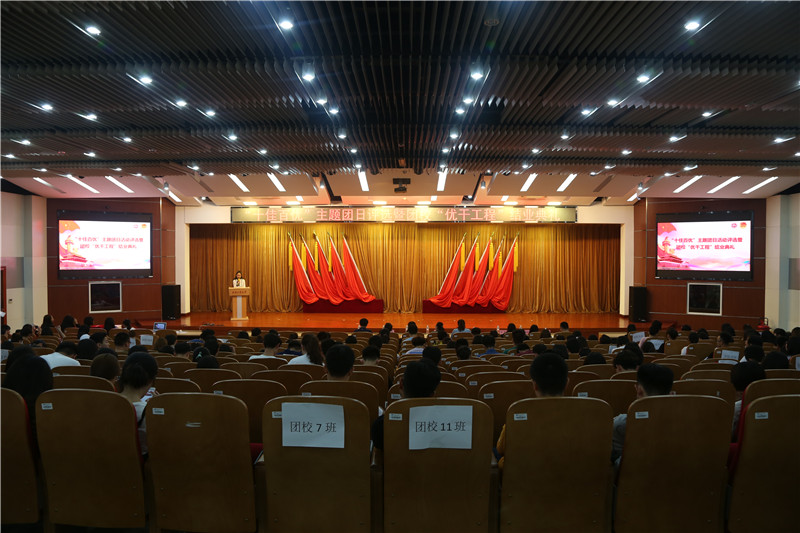 “十佳百優(yōu)”主題團日活動評選環(huán)節(jié),來自10個學院團委(團總支)推薦申報的15項主題團日活動參加“十佳”主題團日活動評比。各項活動的負責人采用現(xiàn)場PPT、視頻展示或舞臺說唱等形式,從活動主題、思想性、創(chuàng)新性、成效收獲等方面進行匯報。答辯會評委們根據(jù)各申報單位活動開展及現(xiàn)場答辯情況進行綜合評判和現(xiàn)場評分,最終評選出一、二、三等獎和優(yōu)秀獎,前三等獎直接獲得“十佳主題團日活動”稱號,由各學院組織推薦申報的100項主題團日活動經(jīng)評委會審核后獲評“百優(yōu)主題團日活動”稱號。與會領導為獲得2017-2018學年“十佳百優(yōu)”主題團日活動的團組織進行了現(xiàn)場頒獎。