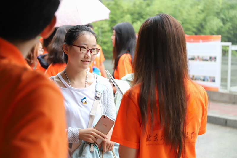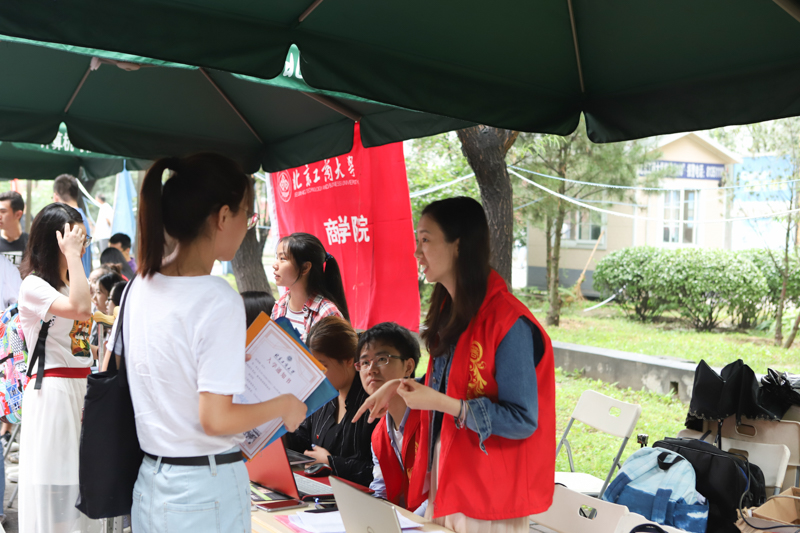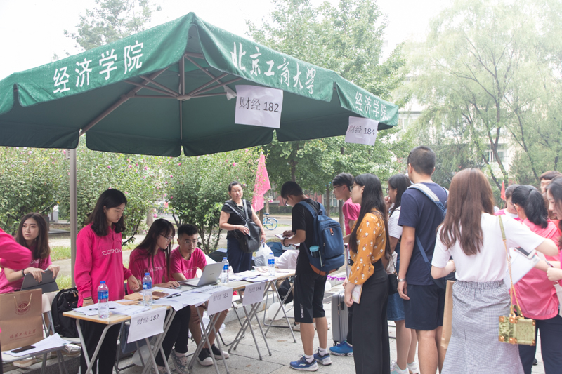 食品學院只有大一新生在良鄉校區學習,為了能夠幫助新生們順利完成報到,學長學姐們一大早從阜成路校區趕過來為新生們提供幫助。理學院、材料與機械工程學院和計算機與信息工程學院的報到處,新生們在老師和學長學姐的引導幫助下有條不紊地進行著報到;經濟學院漂亮的氣球裝飾是熙攘人群的一抹亮色;商院的身著老虎玩偶服的激萌志愿者很大程度的幫助新生們緩解了緊張的心情,黨員愛心工作站也引來新生和家長關注。