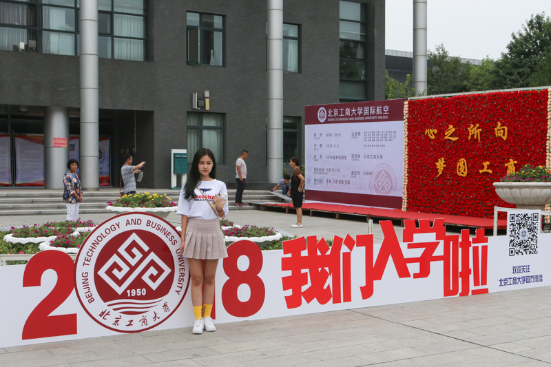 校門口“熱烈歡迎2018級新同學””“2018我們入學啦” “我愛北工商”“開啟新征程、譜寫新篇章”的紅色迎新拱門、燈柱和條幅等顯得格外喜慶和醒目。