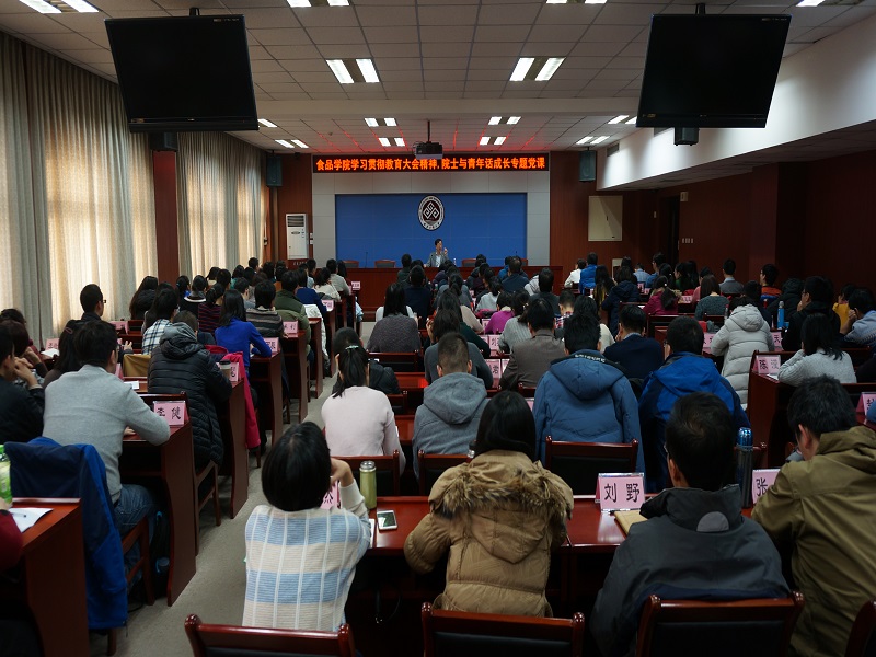 12月5日,食品學(xué)院黨委邀請(qǐng)校長(zhǎng)孫寶國(guó)院士為學(xué)院青年教師、博士后和博士生黨員舉辦“學(xué)習(xí)貫徹教育大會(huì)精神,院士與青年話成長(zhǎng)” 專題黨課。專題黨課由學(xué)院黨委書記何猛主持,食品學(xué)院全體青年教師、博士后和博士生黨員參加了講座。