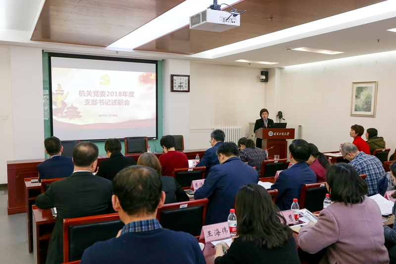 學校黨委以習近平新時代中國特色主義思想和黨的十九大精神為指導,全面貫徹落實全國高校思想政治工作會議、組織工作會議精神,推動全面從嚴治黨向基層延伸,按照市委組織部、市委教育工委有關要求和《中共北京工商大學委員會2018年度基層黨建述職評議考核工作實施方案》相關安排,2018年12月至2019年3月上旬,學校14個基層黨委、黨總支先后組織下轄基層黨支部開展述職評議會,全校200余名黨支部書記進行全面現場述職。黨委組織部、教師工作部、學生工作部、研究生工作部相關人員到會列席會議。