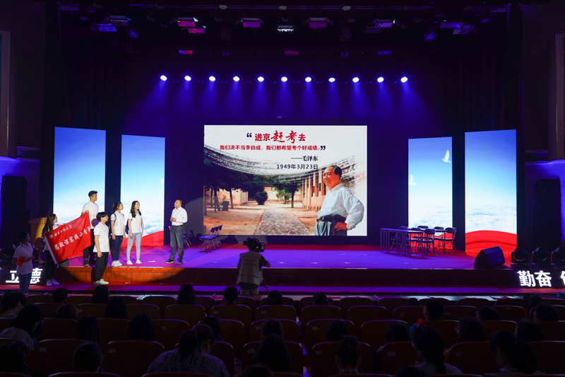 熒幕上,師生們熟悉的學校黨委書記、校長、學院書記、院長、教師、班主任、輔導員和學生代表們質(zhì)樸而真摯的話語,表達了他們以堅定的信念“學起來”的決心。舞臺上,國家獎學金獲得者、優(yōu)秀學生黨員、北京市資助宣傳大使、北京高校十九大宣講團成員以誠摯的情懷講述了他們作為新時代青年在各自舞臺上的奮斗故事。他們樸實的話語,感人的故事贏得在場師生的熱烈掌聲。