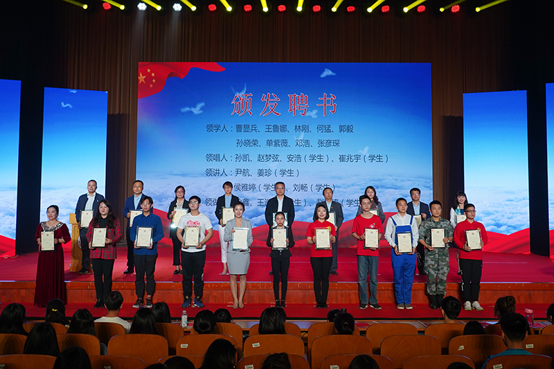 學校把慶祝新中國成立70周年“我和我的祖國”主題教育活動啟動儀式作為一次重要的愛國主義教育契機,以宣講、對話、光影、音樂等多種形式,將第一課堂教學同第二課堂社會實踐、學生社團活動等相結(jié)合,將啟動儀式辦成一場師生共同參與、情景交融、主題鮮明的大型思想政治理論課,為學生思想解疑釋惑,引導學生堅定信念,立鴻鵠志,做奮斗者。