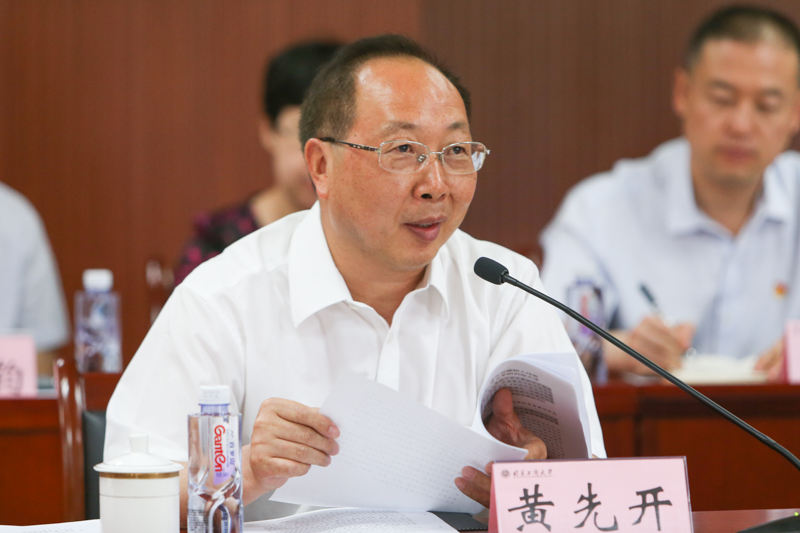 會上,校黨委書記黃先開代表學(xué)校以《加強黨的政治建設(shè) 落實立德樹人任務(wù) 推進建設(shè)特色鮮明的高水平研究型大學(xué)》為題,從堅持把握政治方向,為首都經(jīng)濟社會發(fā)展培養(yǎng)高素質(zhì)人才;堅持永葆政治本色,自覺在思想上行動上同黨中央保持高度一致;堅持黨的政治領(lǐng)導(dǎo),改進和完善黨的領(lǐng)導(dǎo)體制和領(lǐng)導(dǎo)方式;堅持提高政治能力,著力加強基層組織建設(shè)和黨員干部隊伍管理;堅持涵養(yǎng)政治生態(tài),營造風(fēng)清氣正的大學(xué)環(huán)境;堅持落實主體責(zé)任,推進學(xué)校黨的政治建設(shè)落到實處等六方面,對學(xué)校黨的政治建設(shè)工作情況進行了匯報。他指出,學(xué)校黨委堅持以政治建設(shè)為統(tǒng)領(lǐng),堅持“三統(tǒng)籌三融合”,推動習(xí)近平新時代中國特色社會主義思想入腦入心,圍繞“兩培訓(xùn)兩實踐三平臺”,扎實推進基層黨組織工作創(chuàng)新,扎實做好黨的建設(shè)和思想政治工作,學(xué)校黨的政治建設(shè)明顯加強,取得了顯著成效。他談到,學(xué)校黨委推進黨的政治建設(shè)工作中,全面從嚴(yán)治黨主體責(zé)任向基層延伸還需增強;基層黨組織建設(shè)水平仍需提升;思想政治理論課教師隊伍尚需加強。他表示,北京工商大學(xué)作為北京市重點建設(shè)的多科性大學(xué),肩負(fù)著為北京青年學(xué)生提供優(yōu)質(zhì)教育,為北京城市發(fā)展奉獻出色服務(wù)的辦學(xué)使命,學(xué)校黨委將始終堅持黨的全面領(lǐng)導(dǎo),全面落實立德樹人根本任務(wù),堅持“內(nèi)涵、特色、規(guī)范、質(zhì)量”發(fā)展方針,為辦好人民滿意的首都教育而不懈努力。