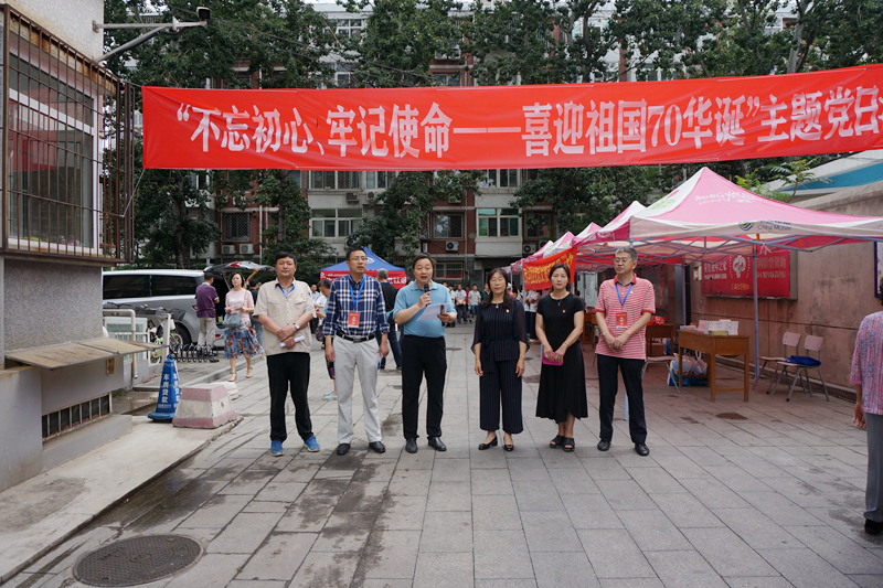 為紀(jì)念中國(guó)共產(chǎn)黨成立98周年,學(xué)習(xí)習(xí)近平新時(shí)代中國(guó)特色社會(huì)主義思想和黨的十九大精神,充分發(fā)揮黨支部戰(zhàn)斗堡壘作用和黨員先鋒模范作用,6月28日,公共事務(wù)處黨總支聯(lián)合學(xué)校社區(qū)居委會(huì)、304醫(yī)院急診科、甘家口社區(qū)醫(yī)院、市熱力集團(tuán)、甘家口食品藥品監(jiān)督所等多家單位,在阜成路校區(qū)開(kāi)展了以“不忘初心,牢記使命”為主題的黨日活動(dòng)。公共事務(wù)處黨總支黨員、科室骨干和相關(guān)單位100余人參與活動(dòng),方德英副校長(zhǎng)參加了此次活動(dòng)。