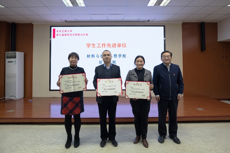 1月14日晚,學校舉辦第七屆輔導員素質能力大賽暨2019年度學生工作總結表彰會。校黨委書記黃先開、校黨委副書記張德玉、紀委書記歐陽媛、副校長張耘、鄭文紅以及學校思想政治工作(三全育人)領導小組成員、學工部、研工部、招生就業處、團委成員以及各學院副書記、全體輔導員參加。北京市委教育工委宣教處處長寇紅江、教育部高校輔導員培訓和研修基地依托單位、北京師范大學學工部部長隋璐璐作為特邀嘉賓出席活動并做大賽評委。
