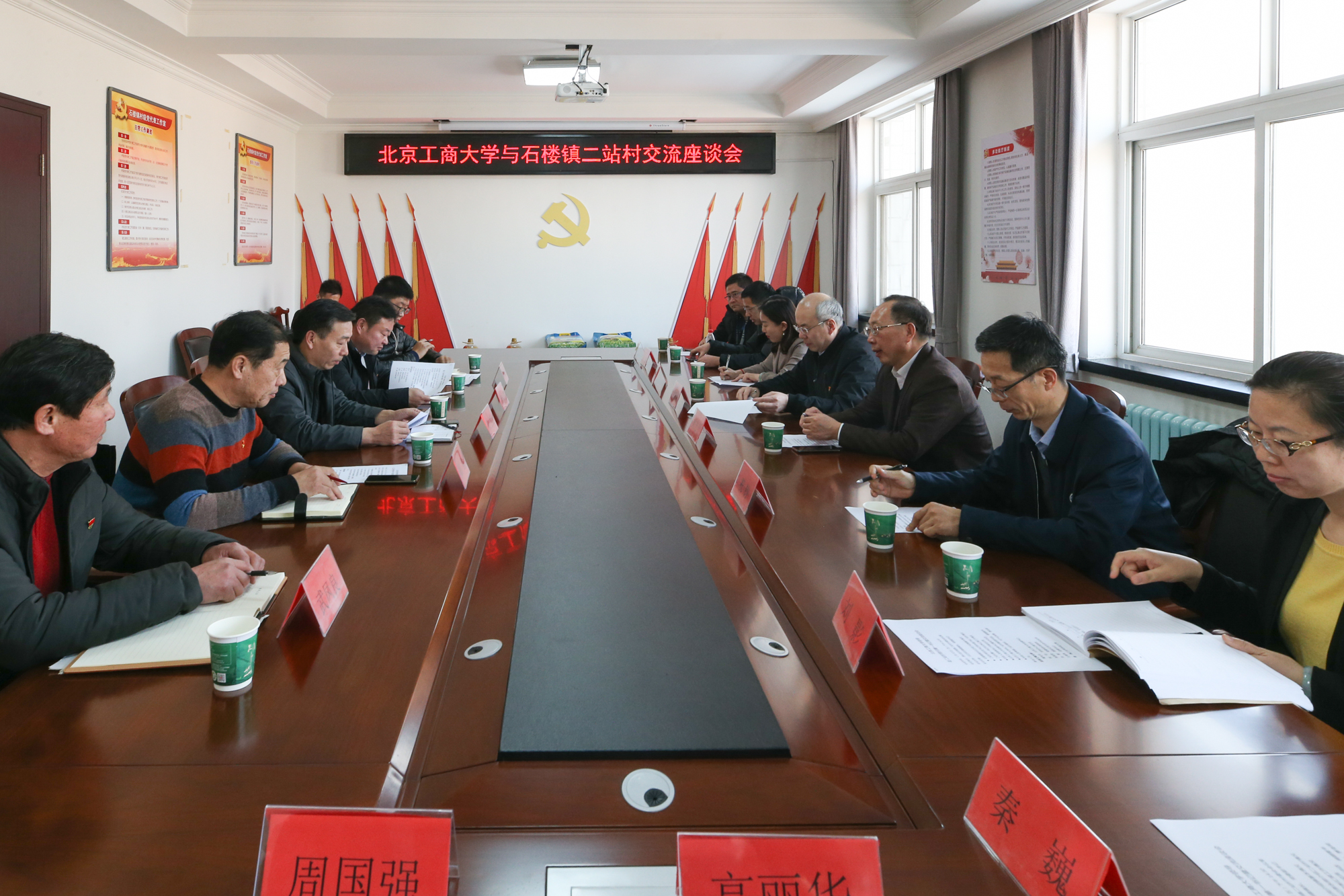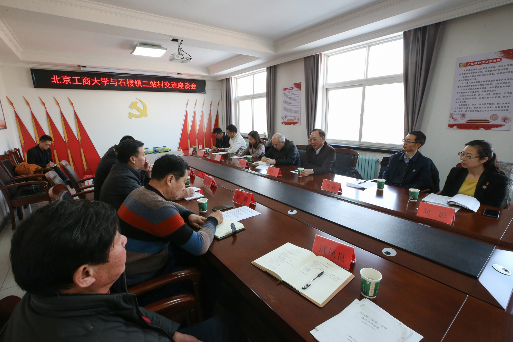 二站村黨總支第一書記、我校國際交流與合作處干部劉文彬匯報了任職以來的工作,感謝學校黨委給予寶貴的鍛煉機會,感謝學校領導百忙之中專程看望慰問,對于學校的大力支持非常感動,他表示,在接下來工作中,一定會發(fā)揚艱苦奮斗的工作作風,繼續(xù)探索學校與二站村深入合作的新模式,將北工商人的風采揮灑在京南這片寶地上。我校公共事務處干部、二站村黨總支原第一書記周國強談了兩年半的駐村工作體會,感謝學校黨委、村鎮(zhèn)給予的大力支持,自己豐富了閱歷,增長了才干。