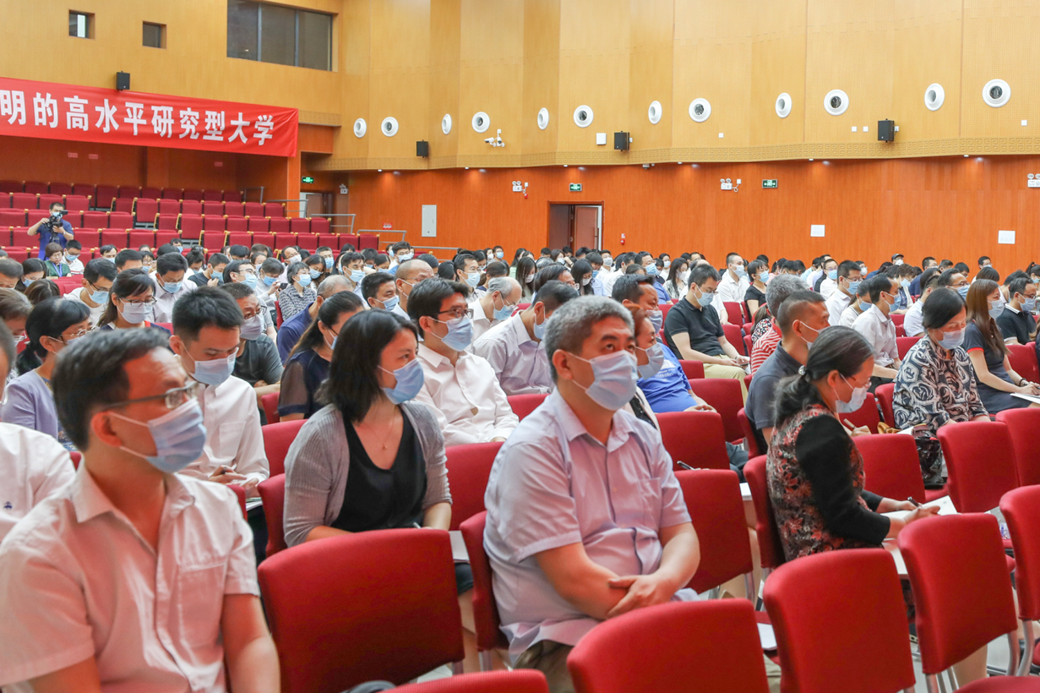 校長孫寶國院士以《統一思想,凝聚共識,明確目標,奮勇拼搏,為建設高水平研究型大學而努力奮斗》為題作動員部署。孫寶國校長闡述了此次會議的重要性和必要性,強調此次會議緊緊圍繞人才培養的根本問題,既是學校教育教學思想大學習大討論動員會,也是學校建設高水平研究型大學的啟動會,至關重要,意義重大。孫寶國校長指出,在中共北京市委教育工作領導小組印發的《北京市屬公辦本科高校分類發展方案》中,學校進入北京市高水平研究型大學的建設行列,振奮人心,來之不易,全體師生要倍加珍惜、倍加努力,要增強危機意識,學懂弄通上述文件精神,對標“一工三首”,放眼“世界一流”,制定可量化、可考核目標體系,圍繞人才培養、科學研究、社會服務、師資隊伍建設四個方面,始終踐行以學生為中心的發展思想,深入推進培養高素質創新型人才,全面實現學校人才培養“369”標志性指標,在兩年建設期間扎實開展工作,力爭取得建設新成效。孫寶國校長提出建設高水平研究型大學十大目標任務:一是要強化師資隊伍建設,堅持以自主培養為主,培養和引進相結合,鼓勵拼搏,培養和引進有家國情懷和責任擔當的優秀人才、領軍人才;二是要將博士點申報作為學校工作的重中之重,全校上下要統一思想、提高認識,舉全校之力做好博士點申報工作;三是要爭取國家級平臺,以“志在必得”的信心,全力以赴突破國家重點實驗室獲批;四是要高度重視第五輪學科評估,做好頂層設計,形成從校領導到院長再到學科負責人的責任體系,明確分工,各學科、各單位主動發力;五是要積極推進“雙萬計劃”建設,著力提高學校國家級一流本科專業點數量;六是要加快世界一流學科建設,特色學科爭取進入世界一流學科前列,其他學科要調整方向、凝練特色,按照“互補、錯位”原則,做到“人無我有”“人有我優”;七是要深入分析研究,精準發力,力促重點學科進入ESI前1%;八是要努力獲批國家級項目,特別是國家自然科學和社會科學基金項目,以申報助推學??蒲邪l展;九是要高度重視國家科學技術獎和國家教學成果獎等國家級獎勵獎項的申報工作,科學規劃,確保取得新突破;十是要把服務北京、服務首都放到戰略高度來認識,科學研究要立足首都,要面向經濟社會發展主戰場、面向北京,科研成果轉化要首選北京,為首都“四個中心”建設做出應有的貢獻。孫寶國校長強調,高水平研究型大學建設為北工商未來發展指明了方向,為北工商“雙一流”建設帶來了機遇,全體教職工要統一思想,形成共識,齊心協力,奮勇拼搏,早日將我校建設成為特色鮮明的高水平研究型大學!