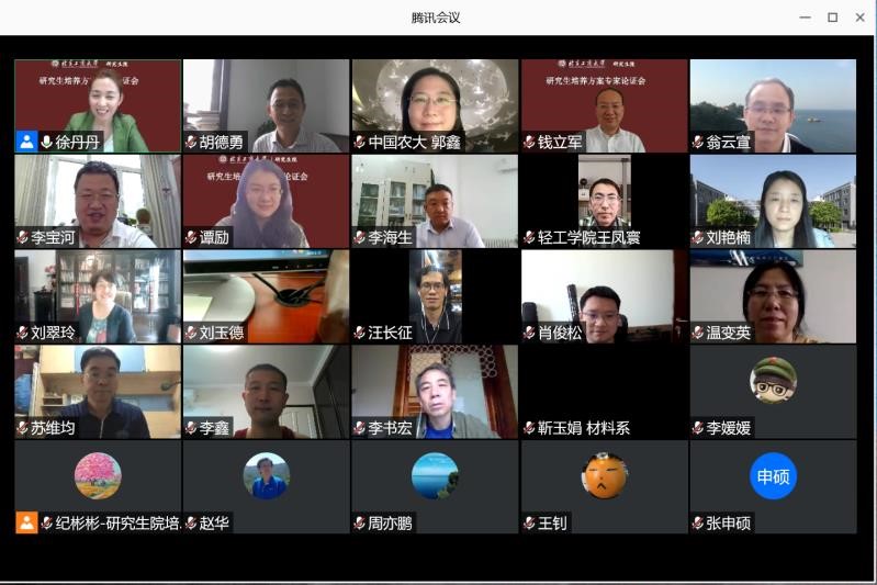 6月29日、30日,研究生院在線召開了2020級研究生培養方案論證評審會。本次評審會邀請校外專家、校內專家、各學院分管院長、學科負責人、研究生教學秘書等共90余人參加會議。會議由研究生院院長徐丹丹主持。