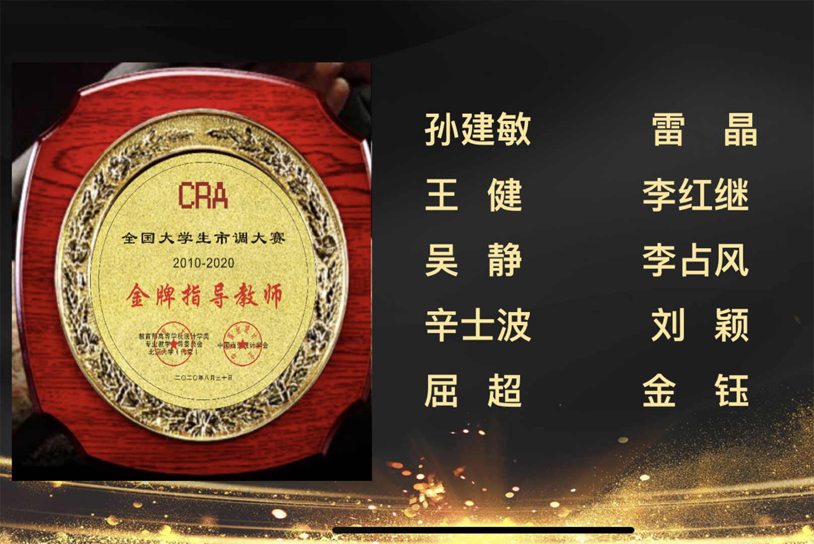 8月29日至30日,“正大杯”第十屆全國大學生市場調查與分析大賽暨第九屆海峽兩岸大學生市場調查與分析大賽總決賽圓滿落幕,我校推薦參賽的15支隊伍,共獲全國一等獎3項、三等獎4項,北京賽一等獎7項、二等獎5項、三等獎3項。數學與統計學院經濟統計系主任辛士波榮膺“2010-2020年全國大學生市調大賽金牌指導教師”稱號。