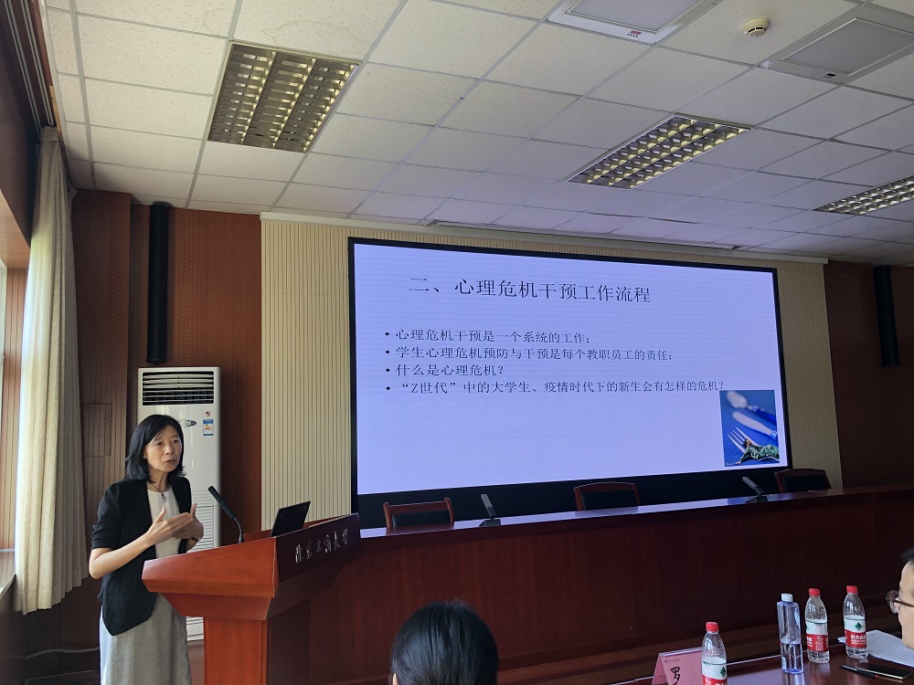 心理素質(zhì)中心副主任張宏宇結(jié)合學(xué)校心理中心的主要工作內(nèi)容,講解了學(xué)生危機(jī)干預(yù)流程與識(shí)別的注意事項(xiàng),幫助新生班主任正確認(rèn)識(shí)和區(qū)分學(xué)生心理困擾,關(guān)愛(ài)學(xué)生心理健康情況,促進(jìn)學(xué)生個(gè)體的成長(zhǎng)和自我實(shí)現(xiàn)。“指南針”班會(huì)設(shè)計(jì)工作室負(fù)責(zé)人、人工智能學(xué)院輔導(dǎo)員梁丹丹就新生班會(huì)設(shè)計(jì)進(jìn)行了介紹,強(qiáng)調(diào)新生班主任在主題班會(huì)中的重要角色,號(hào)召班主任開(kāi)發(fā)多樣、有趣的主題班會(huì)形式,借助主題班會(huì)了解班級(jí)同學(xué)所思所想、傳播正能量。學(xué)生處黨浩對(duì)2020級(jí)學(xué)生手冊(cè)中的重點(diǎn)內(nèi)容進(jìn)行了解讀,幫助新生班主任了解本科生教學(xué)管理、學(xué)生獎(jiǎng)勵(lì)、日常管理、學(xué)生資助、學(xué)生事務(wù)的相關(guān)內(nèi)容。
