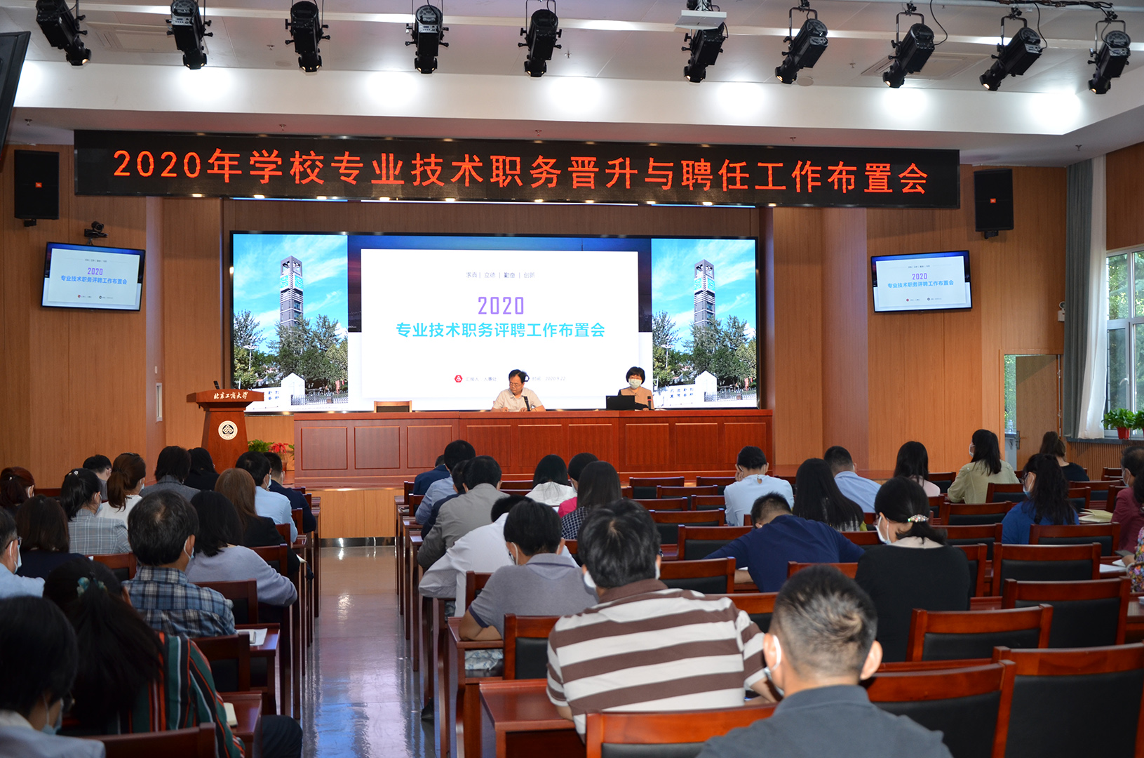 9月22日上午,學校在阜成路校區召開2020年專業技術職務晉升與聘任工作布置會。會議由副校長賈英民主持,各單位主要負責人和相關工作人員參加會議。