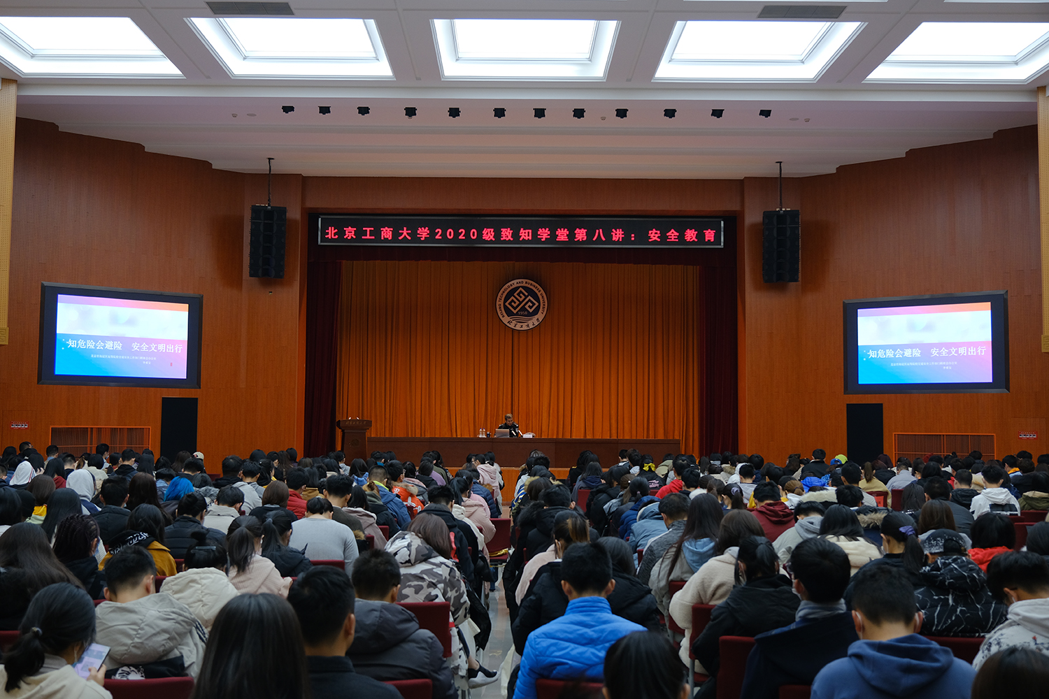 為強化學生安全意識,督促學生掌握安全知識,提升安全技能,營造安全穩定的校園環境,11月24日,致知學堂第八講在阜成路校區開講,北京市海淀區高等院校交通安全工作部門聯席會主任李希寶警官和海淀公安分局甘家口派出所北京工商大學社區民警王高波以“安全教育”為題進行專題講座。講座以同步直播形式開展。