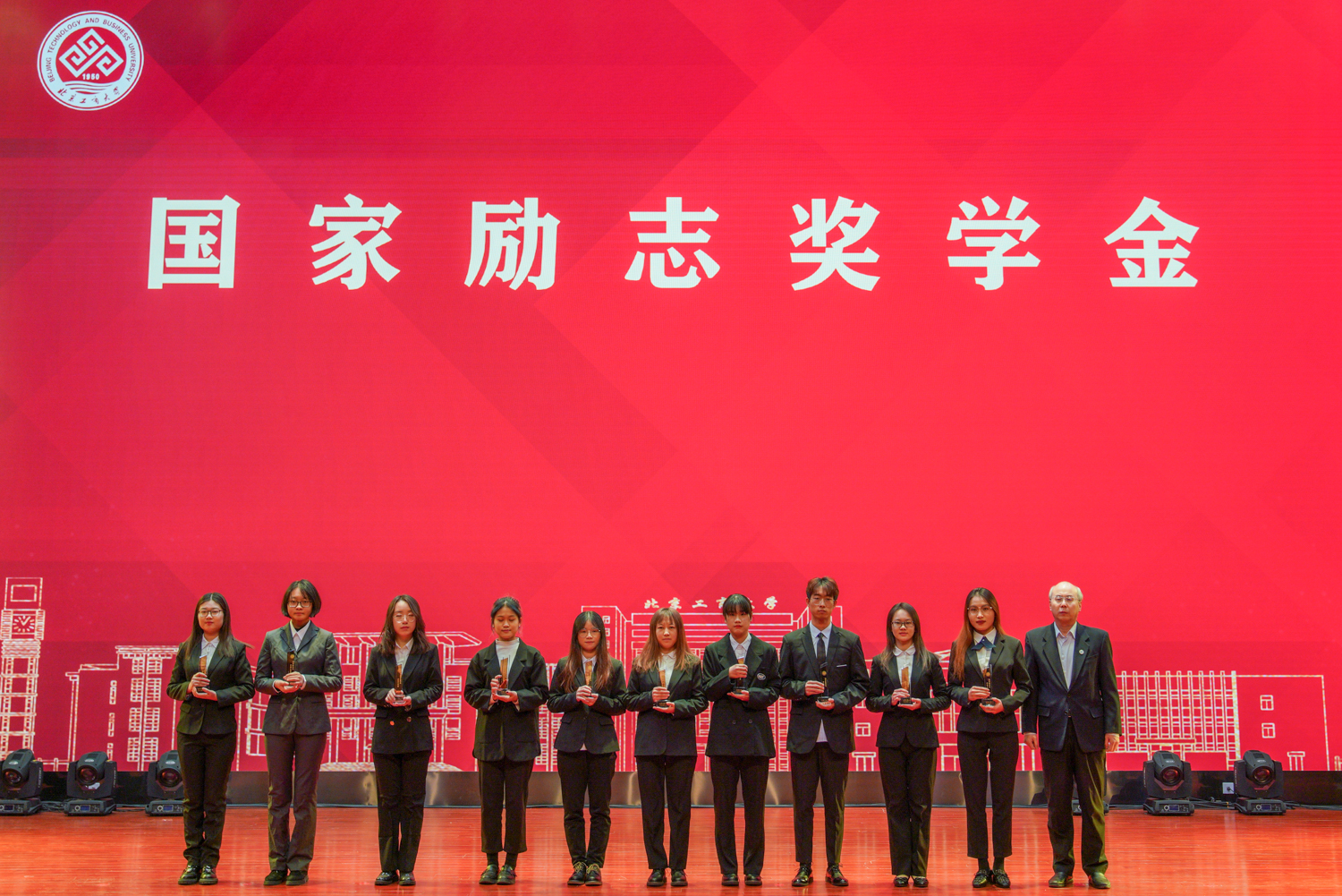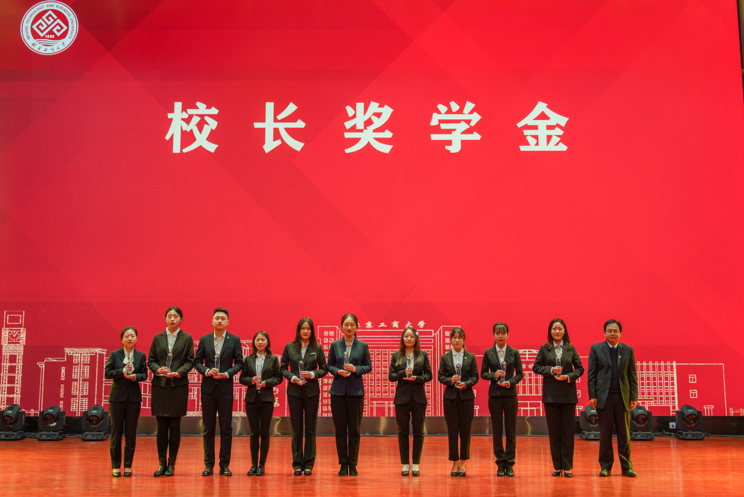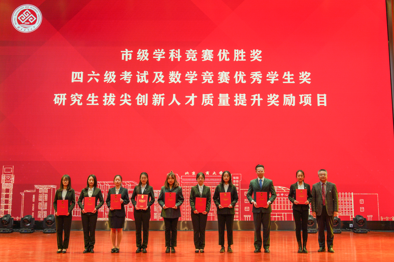 今年,學校共有1384名同學榮獲校級及以上榮譽稱號,4083人次榮獲優秀學生獎學金和各類單、專項獎學金。其中,23名本科生、49名研究生獲得國家獎學金;359名學生獲得國家勵志獎學金;502名同學在各類市級及以上學科競賽中取得優異成績、484項研究生拔尖創新人才質量提升項目予以實施。會上,精心制作的頒獎視頻講述了一個個刻苦學習、奮戰賽場、熱心公益、志愿服務的故事,傳遞著北工商學子們刻苦求知、志存高遠、踏實做人、追求卓越的精神,充分展示了獲獎集體與學子們以奮斗者的姿態逐夢前行的青春風采,深深感染、激勵著在場師生。