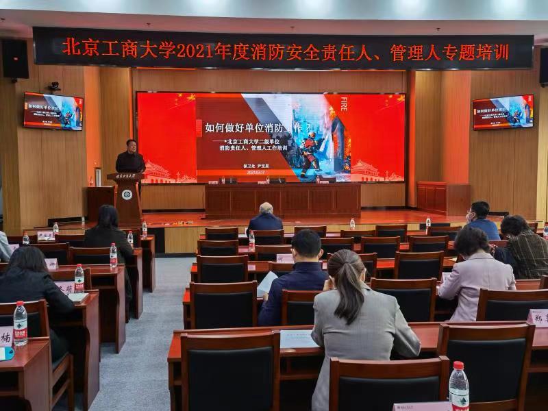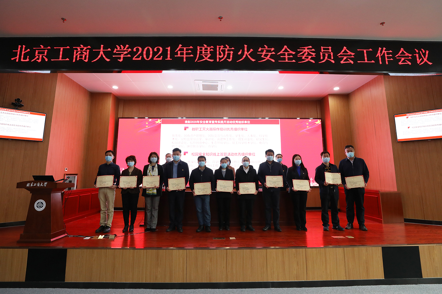 保衛處副處長尹寶星做《北京工商大學2020年學校消防工作總結與2021年消防工作要點》報告。會議對教職工滅火器操作培訓優秀組織單位和校園安全知識線上答題活動優秀組織單位進行表彰。
