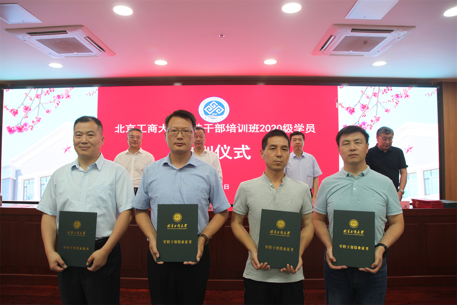 鄭文紅在致辭中對2020級24名軍轉學員順利結訓表示熱烈祝賀,向悉心指導學員的老師表示衷心感謝。他提到,軍轉學員們2020年9月走進北京工商大學,是我們的校友,北京工商大學有著優秀的文化傳統和積極推動首都經濟行業發展、服務北京“四個中心”建設的使命擔當,希望學員們繼續秉承“求真、立德、勤奮、創新”的校訓,把北工商精神帶到今后的工作和生活中去。鄭文紅副校長對學員們提出了兩點希望:一是希望學員們勤學好思,讓學習成為習慣。轉變思想觀念、改善知識結構,提高適應地方環境、勝任工作的能力和水平,由軍隊人才成長為地方人才。二是希望學員們實干篤行,永懷報國之志。將軍人忠誠祖國、報效祖國的品格,以及北工商人實干篤志的精神帶到實際工作中去,勇于開拓、勤于耕耘、甘于奉獻,將一年以來的所學所獲融入本職崗位,再立新功。