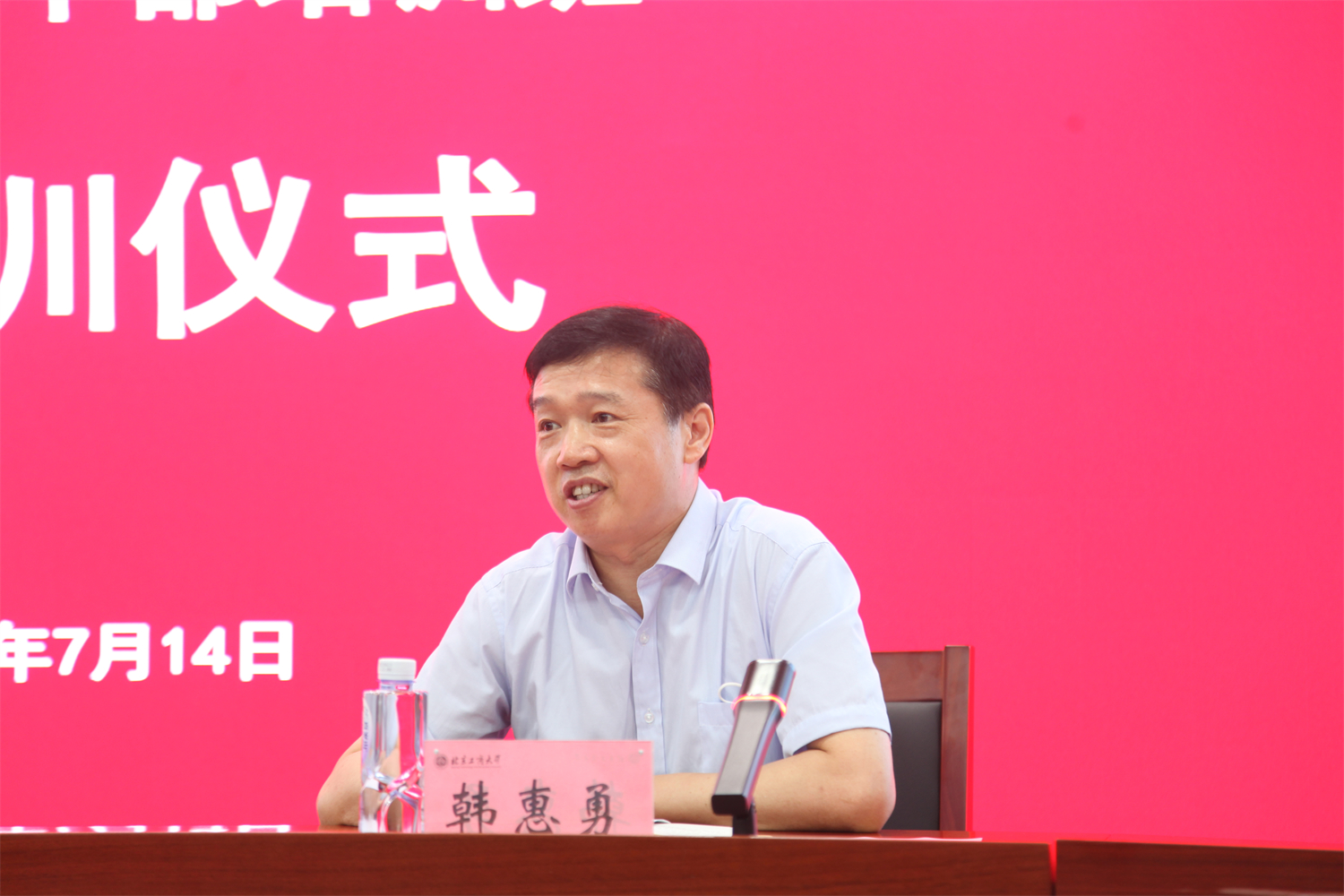 韓惠勇作總結講話,他高度贊揚了北京工商大學以高度的政治責任全力以赴承擔本次培訓任務,感謝了學校的社會擔當。他指出,軍轉干部克服了工作、學習、生活的諸多困難,在一年的培訓中取得優異成績,充分體現了軍轉干部進高校培訓的重要意義,也展示了軍轉干部講政治、能吃苦、敢打硬仗、勇爭上游的優良作風。他希望大家以此次培訓為起點,把握時代機遇,立足本職工作,發揚退役軍人優良作風,強化使命擔當,在各自的崗位上繼續拼搏努力,在新的發展征程中再創佳績,帶著學校的祝福和教師的希冀,不斷進步、贏得未來。
