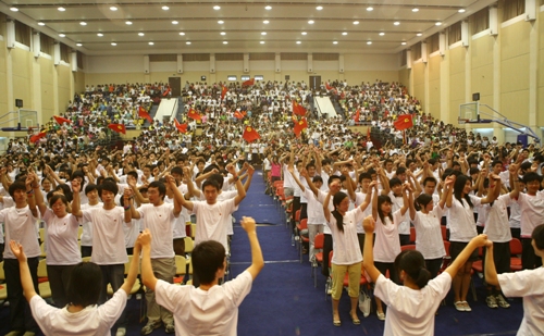 會議最后,四次整齊劃一的“愛的鼓勵”的掌聲響徹文體館,而“我是明星”的歌聲又一次讓所有的志愿者們重溫了志愿大家庭的溫暖與激情。志愿者們表示:已經做好了吃苦的準備,希望大家為了同一個目標共同奮斗,讓我們圓滿這世界的夢,圓中國人的夢!讓全世界的人都見識到中國的風采!