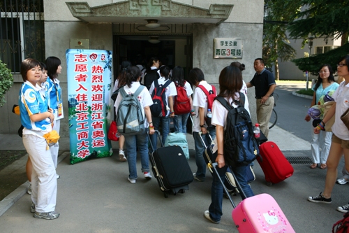 【微笑奧運】盧思鋒副書記帶隊歡迎浙江省志愿者入住我校(圖片)