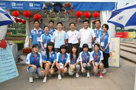 謝志華副校長為每個(gè)服務(wù)站點(diǎn)的志愿者送來了牛奶和飲料,他鼓舞志愿者要克服高溫和勞累,在志愿服務(wù)中鍛煉自己。在八寶山地鐵站服務(wù)站點(diǎn),謝副校長在留言板上寫下了“以心助奧必成就自我”的勉勵(lì)語句。