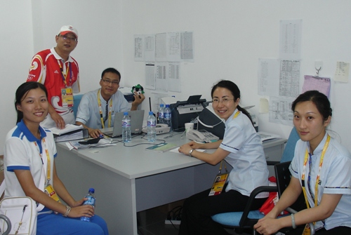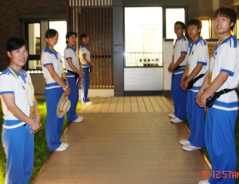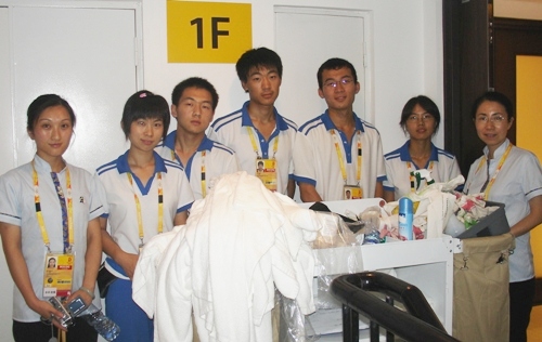 為了滿足代表團在時間上的特殊需要,部分公寓樓將本應(yīng)上午進行的做房工作移到晚上運動員離開之后。直到夜里23點,許多樓里的服務(wù)生仍然堅持作業(yè),緊張而有條不紊。在工作人員和各國運動員一起圍坐在電視機旁,為奧運會開幕盛典驚嘆歡呼的時候,我校居民服務(wù)中心的前臺服務(wù)生們?nèi)詧猿种祶彛⑿Ψ?wù),認真履行著自己的職責(zé)。
