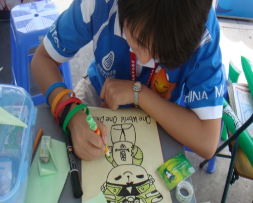 上午八點,規定上崗時間還未到,大家已全部提前走上各自的崗位。繪制福娃、吹氣球、制作愛心留言板,折紙鶴……所有志愿者都充分發揮自己的才能,開始布置站點。經過一段時間的 “打扮”,崗亭煥然一新,也有了家的感覺。志愿者們耐心的為過往的路人提供信息咨詢、語言翻譯和應急服務等各項力所能及的貼心服務,周邊的群眾和民警都很支持志愿者的工作,同時也對志愿者們的工作提出意見或建議。原本空蕩蕩的站點很快就熱鬧起來,不時會有老人和小朋友過來看看,或談談天,或做做游戲……所有站點都被“人文奧運”的溫馨氣氛包圍著。