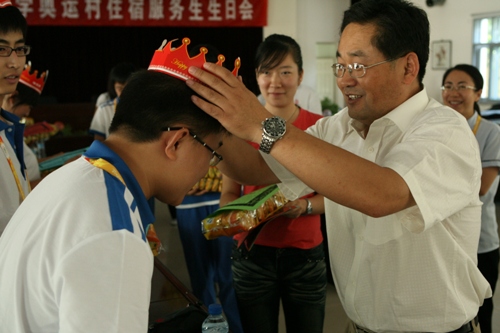 此次座談會恰巧又是8月份住宿服務生們的生日會,伴著“生日快樂”的歡快節奏,張德玉副書記和8月份的“小壽星”服務生們一同度過了這個具有特殊意義“奧運生日”。會場上,充滿了感動與溫暖,張德玉親自為服務生們在帶上生日帽、合唱生日歌、還為“小壽星們”送上小禮物。張徳玉在送上生日祝福的同時,對帶隊老師們為奧運服務生在業余生活、精神鼓勵上付出的辛勤勞動表示充分肯定。