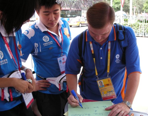 永定路站點位于奧運老山場館和五棵松場館之間,地處交通要道,站點就設在長峰假日酒店樓邊上,而酒店主要住的是中外記者。工作任務和壓力可想而知。材料系城市志愿者上崗后,以極大的服務熱情投入到志愿服務中去,他們不僅為市民提供各種咨詢服務、適時更新金牌榜信息、回收廢舊電池、便民打氣等工作,還積極開展豐富多彩的活動,從“奧運燈謎”、“填歌詞 唱奧運”、“成語接龍”、“雙語唱奧運”、“‘淚水 微笑’問卷調查”、“和平奧運,愛心中國”到為老人修鞋,教市民學手語,帶動市民開展全民“毽”身活動。深受中外游客和當地居民的歡迎和贊賞。