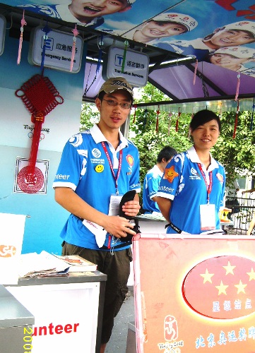 奧運(yùn)會(huì)、殘奧會(huì)期間,我校化工學(xué)院城市志愿者主責(zé)中央電視塔、金域大廈、增光家苑三個(gè)服務(wù)站點(diǎn)。自7月28日上崗以來(lái),志愿者們集思廣益,在提供信息咨詢(xún)、應(yīng)急服務(wù)、語(yǔ)言翻譯等基本服務(wù)的同時(shí),結(jié)合北京奧運(yùn)會(huì)、殘奧會(huì)的開(kāi)展情況以及行人游客的日常需要,開(kāi)展了 “文明出行 為八一獻(xiàn)禮”宣傳活動(dòng)、 “聽(tīng)軍歌 猜軍歌 唱軍歌”活動(dòng)、 “北京文化小講堂”、全民健身趣味體育活動(dòng)、奧運(yùn)剪紙大賽、老北京空竹表演、“我心中的奧運(yùn)明星”、“千言萬(wàn)語(yǔ)寄劉翔”愛(ài)心留言行動(dòng)、“北京小吃對(duì)對(duì)碰”等豐富多彩的活動(dòng),推出了天氣預(yù)報(bào)、路線(xiàn)便簽服務(wù)、北京周邊旅游景點(diǎn)介紹、老北京美食咨詢(xún)、奧運(yùn)賽況時(shí)報(bào)等一系列服務(wù),使每天瑣碎的服務(wù)工作變得具體而又充滿(mǎn)樂(lè)趣。雖然不能像場(chǎng)館志愿者那樣親身感受激烈火爆的比賽現(xiàn)場(chǎng),但是志愿者們也時(shí)刻用最真誠(chéng)的微笑以及最熱情的服務(wù)贏得了中外賓客的稱(chēng)贊。服務(wù)時(shí)期,三個(gè)站點(diǎn)中有兩個(gè)站點(diǎn)被先后評(píng)為“五星級(jí)站點(diǎn)”。