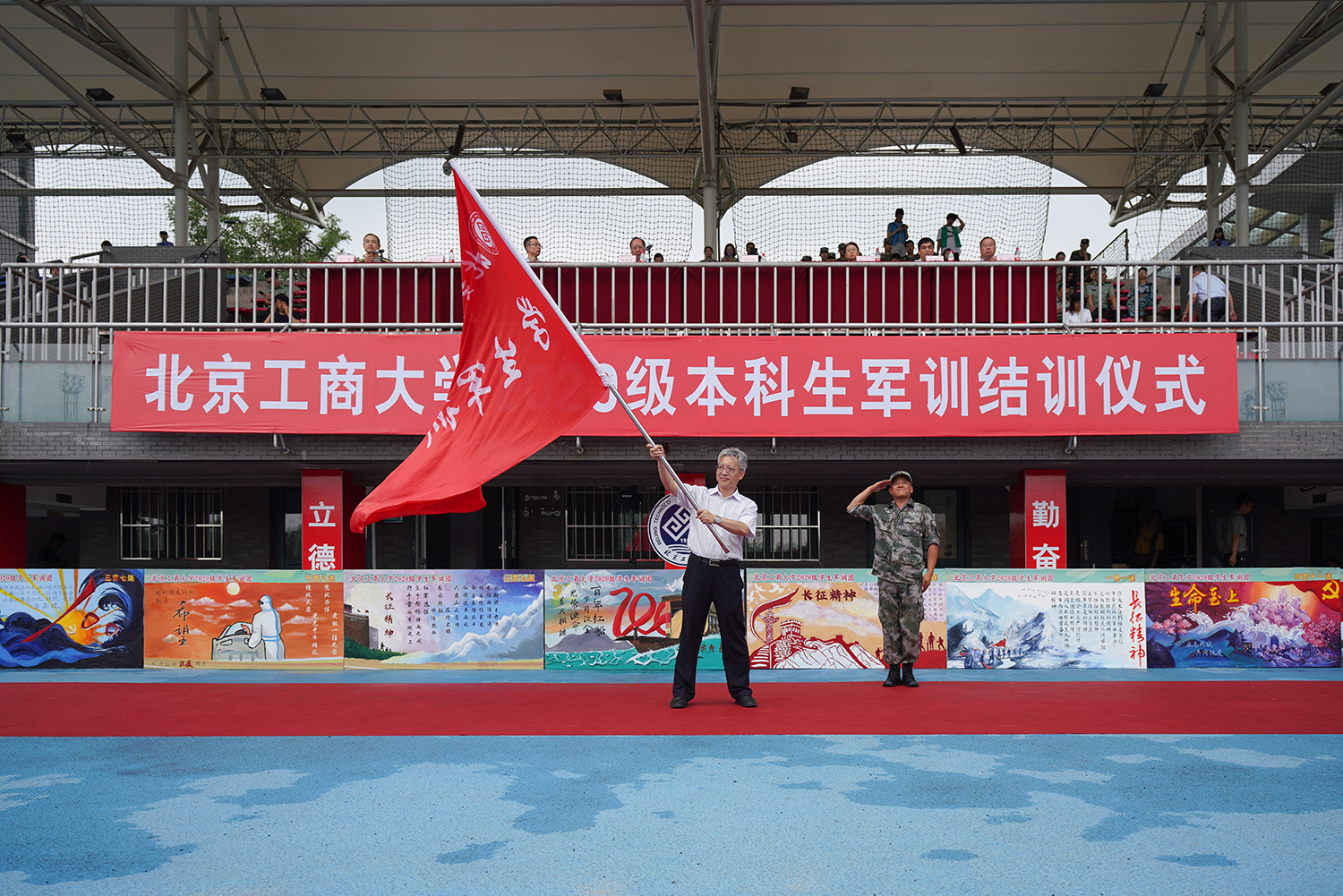 黃先開作總結講話。他代表學校黨委行政對高質量完成此次軍訓任務的2020級2823名參訓同學們表示熱烈祝賀,對付出辛勤汗水的教官、全體參訓教師、參與軍訓保障工作全體教職員工致以最誠摯的感謝!他表示,學子們以氣宇軒昂、整齊劃一的分列式,巾幗不讓須眉的匕首操,威武雄壯的警棍盾牌操,獨具特色的旗語操,一招制敵的擒敵拳,貼近實戰的綜合戰術演練等軍事項目匯演,為大家呈現了一場軍事技能的視覺盛宴,彰顯出新時代北工商學子的風采。黃先開書記指出,此次軍訓對于培養愛黨愛國情懷、樹立紀律意識、增強集體榮譽感、磨煉意志品質具有重要的意義。他希望同學們能將軍訓成果轉化為今后的精神力量和行為指南:一是保持優良作風,堅定在逆境中勇于拼搏的信念。要珍惜軍訓這堂人生大課,把困難與挑戰當做人生的寶貴財富,把吃苦耐勞的韌性、昂揚向上的斗志、開拓進取的精神帶到今后的學習生活中,堅定理想信念,錘煉意志品質,成就精彩人生。二是砥礪愛國情懷,弘揚在成長歷程中甘于奉獻的精神。要以戍邊烈士陳祥榕為榜樣,牢記不怕犧牲、甘于奉獻的軍人血性,義無反顧維護祖國利益不受侵犯。三是樹立鴻鵠之志,形成在偉大時代中胸懷天下的奮斗目標。要把個人價值的實現和國家、民族的發展復興統一起來,把個人目標與時代發展統一起來,胸懷大局,為實現中華民族偉大復興的中國夢貢獻青春力量。希望全體同學能以實現中華民族偉大復興為己任,增強做中國人的志氣、骨氣、底氣,不負時代,不負韶華,不負黨和人民的殷切期望!