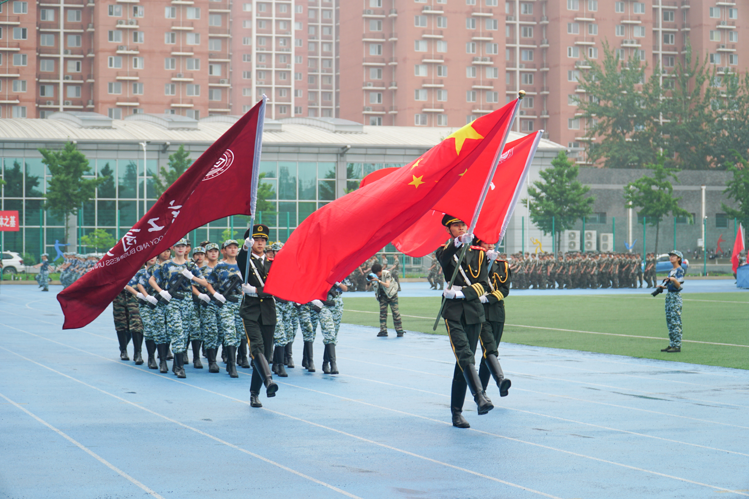 軍訓團趙永斌團長作軍訓總結,他代表軍訓團全體教官誠摯地向學校領導和老師們致以崇高的敬意和衷心的感謝,向所有軍訓團的同學們表示熱烈的祝賀。本次軍訓,學校領導和教官團隊特別優化設計了訓練課目,同學們高標準完成了所有軍訓任務:隊列訓練中的堅韌、拉歌時的熱情、拉練中的剛毅、歌詠比賽時的豪邁,觀影時的愛國熱忱,聆聽報告會時的赤子情懷,完美展現了北工商青年學子的風采。他希望學子們在此次軍訓中不僅僅收獲一套技能,更希望是一次軍旅精神火炬的傳接,希望這團螢螢的火種,陪伴大家攻克學習的難題,跨越工作上的高山險峰!