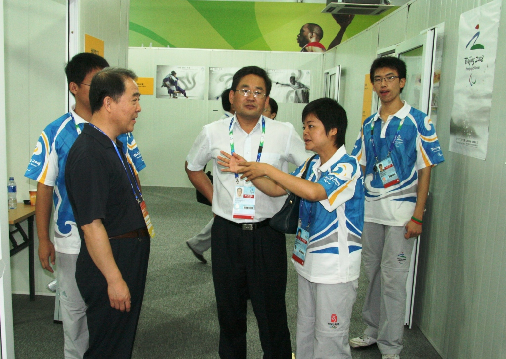 上午9時許,孫堯東一行人在校學生處處長董竹娟、校團委書記呂素香和副書記文四英的陪同下,先后到我校服務生志愿者所在崗位看望在那里工作的學生們。董竹娟分別向領導介紹了住宿服務生的工作職責和殘奧村服務與奧運村服務的區別等基本情況,文四英向領導匯報了我校不同崗位志愿者的工作內容。
