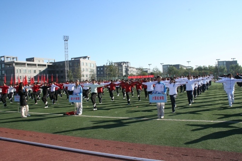 當十幾輛大轎車滿載參賽的20支隊伍浩浩蕩蕩地開進良鄉校區;當參賽隊伍身著精心準備的顏色、款式各異服裝和運動鞋邁著整齊的步伐走過主席臺;當教工們以整齊統一的動作完成表演賽內容時,主席臺的校領導和其他評委們露出了滿意的微笑;觀眾席上的學生們看到廣大教工如此精神抖擻、步調一致,更是報以熱烈的掌聲,并油然而生出一股親切感與發自內心的敬佩。