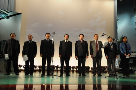 奮進(jìn)的旋律激人拼搏,奮進(jìn)的歌聲催人前行。一曲由合并院系負(fù)責(zé)人合唱的《我們走在大路上》唱出了合并后新院系領(lǐng)導(dǎo)們的心聲。 2008年我校進(jìn)行的院系調(diào)整,為的是進(jìn)一步整合學(xué)科體系,促進(jìn)學(xué)校更快的發(fā)展。但是,目標(biāo)不是一蹴而就的,還需要我們扎實不懈的努力。合并學(xué)院各位領(lǐng)導(dǎo)的歌聲讓我們感覺到他們底氣十足,務(wù)實將是對他們的第一要求。