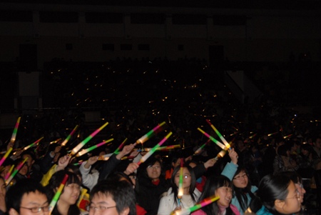 走出會場的每一位觀眾仿佛還都沉浸在歡樂之中,說著,笑著。快樂的時光好像那么的短暫。文體館外,天橋上的彩燈不斷的變換著顏色,照亮了每一個人的笑臉。不知不覺中,一輪新月掛上了天空。歡樂的笑聲和優(yōu)美的校園夜景仿佛預(yù)示著供工商大學(xué)將會迎來一個更加美好的2009年。