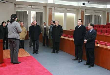 座談會前,陳士能會長在校領導和有關部門負責人的陪同下,參觀了學校文科實踐中心、工科實踐中心、數字藝術制作中心和圖書館等。