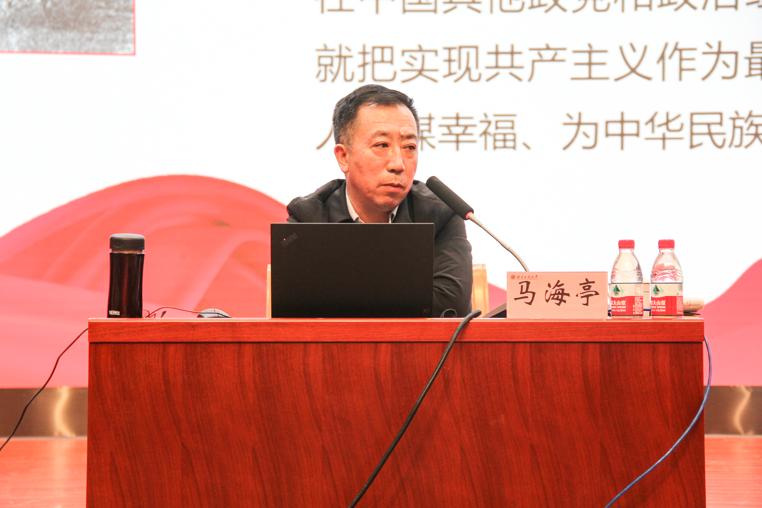 11月23日,致知學(xué)堂第十二講邀請北京魯迅博物館黨委委員、辦公室主任、第一黨支部書記馬海亭,在良鄉(xiāng)校區(qū)以《認(rèn)真學(xué)習(xí)黨史,牢記初心使命》為題進(jìn)行主題講座。馬海亭向同學(xué)們闡述學(xué)習(xí)黨史對于當(dāng)代青年堅(jiān)定理想信念的重要作用,指出學(xué)習(xí)黨史的三個(gè)重要意義:學(xué)習(xí)黨史是牢記初心使命、推進(jìn)中華民族偉大復(fù)興歷史偉業(yè)的必然要求;學(xué)習(xí)黨史是堅(jiān)定信仰信念、在新時(shí)代堅(jiān)持和發(fā)展中國特色社會主義的必然要求;學(xué)習(xí)黨史是推進(jìn)黨的自我革命、永葆黨的生機(jī)活力的必然要求。