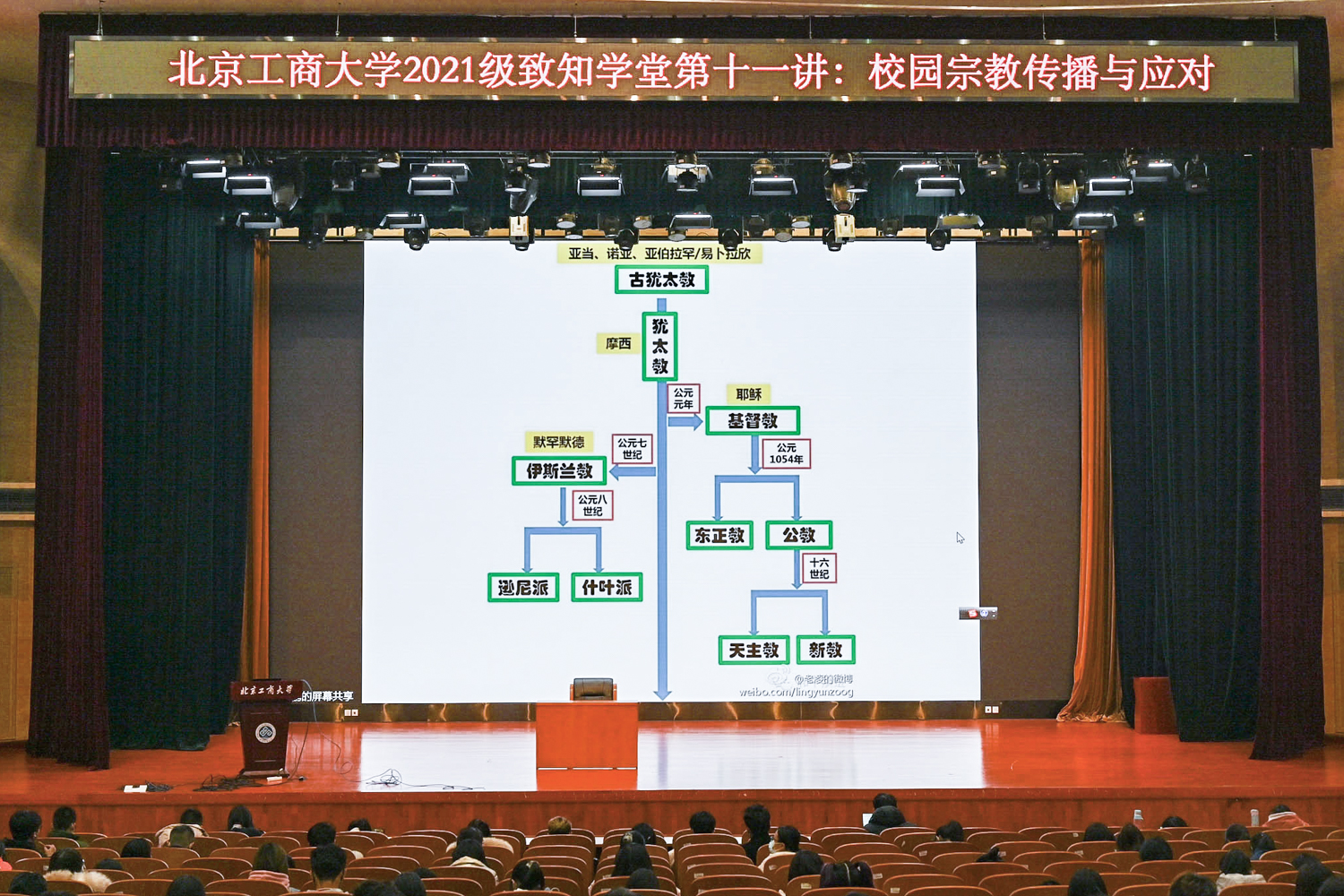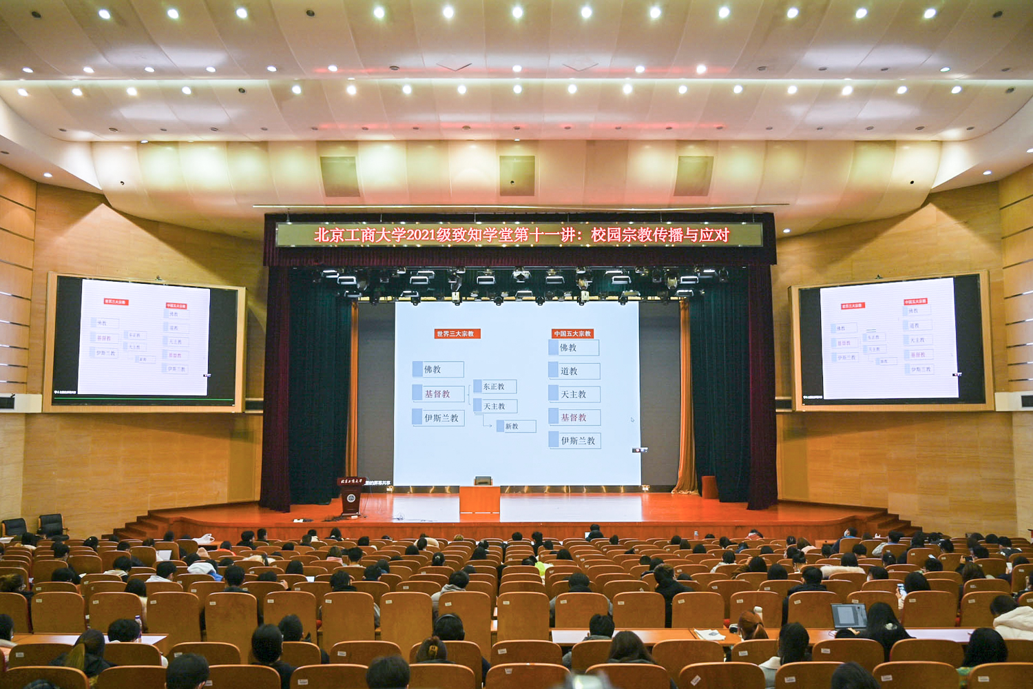 11月18日,中央社會主義學(xué)院教研部副主任左鵬教授在良鄉(xiāng)主校區(qū),以《校園宗教傳播與應(yīng)對》為題進(jìn)行主題講座。左鵬分別從宗教的定義、起源和本質(zhì)這三個(gè)方面為大家介紹了宗教的基本信息,并詳細(xì)介紹了宗教定義中,“宗”指的是創(chuàng)始人、崇拜的對象,“教”是指有一定的祭祀儀式。現(xiàn)如今中國的宗教發(fā)展較為迅速,信教人數(shù)也在持續(xù)增長,與此同時(shí),在信教群體中青年人信教人數(shù)所占比重持續(xù)增加,信教者受教育水平逐步提高。左鵬通過多則實(shí)例辯證闡述了宗教信仰對學(xué)生的影響,并展示了當(dāng)前宗教在高校中的傳播形式,如“團(tuán)契組織”、“網(wǎng)絡(luò)傳教”等,提醒同學(xué)們有效識別宗教內(nèi)容,并進(jìn)行針對性的防范措施。