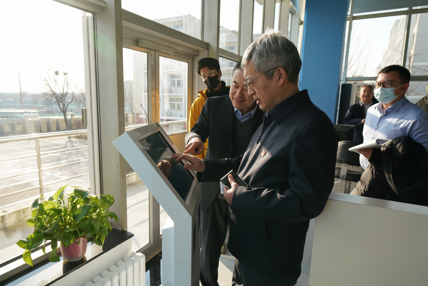 李中奇副書記、各職能部門負責人和學生代表現場取號體驗并參觀服務大廳和自助服務區。